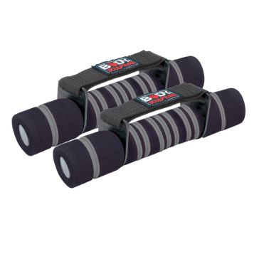 Szivacs réteggel bevont egykezes súlyzó, állítható tépőzáras kézfejpánttal ellátva.