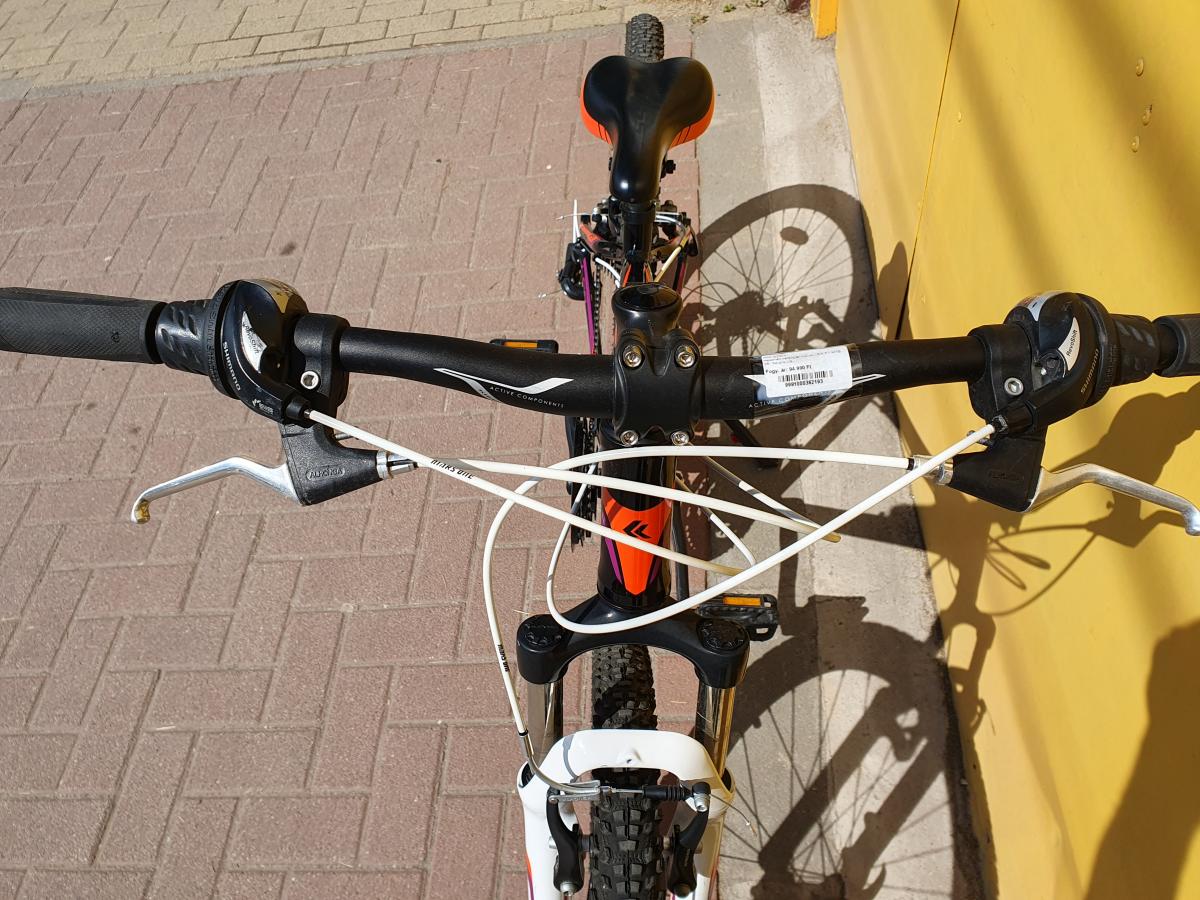 Használt 26"-os kerekű, alu vázas MTB kerékpár. Sportos vázforma, jó felszereltség, szép állapot ami alkalmassá teszi a kerékpárt a mindennapi sportoláshoz gyermekek vagy alacsonyabb nők számára.