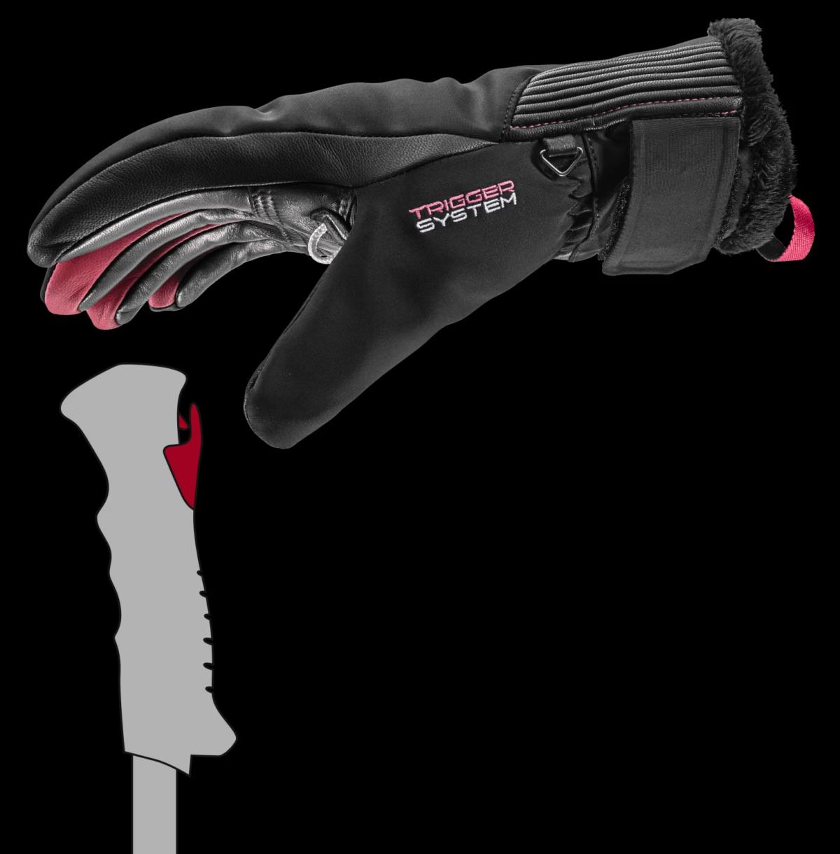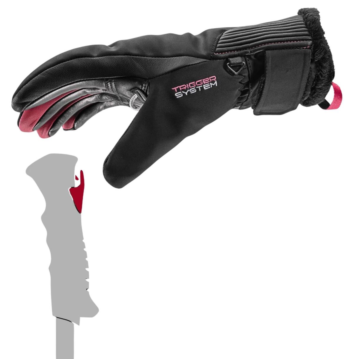 Fázós és kecses női kezekre készült síkesztyű, a Leki Trigger-S leoldós rendszerével.