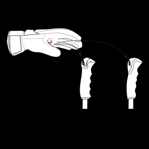 A síkesztyű könnyed mozdulattal összekapcsolható bármilyen "trigger" kioldós rendszerű síbottal, melynek révén az esésből adódó kézsérülés esélye jóval csekélyebbé válik.