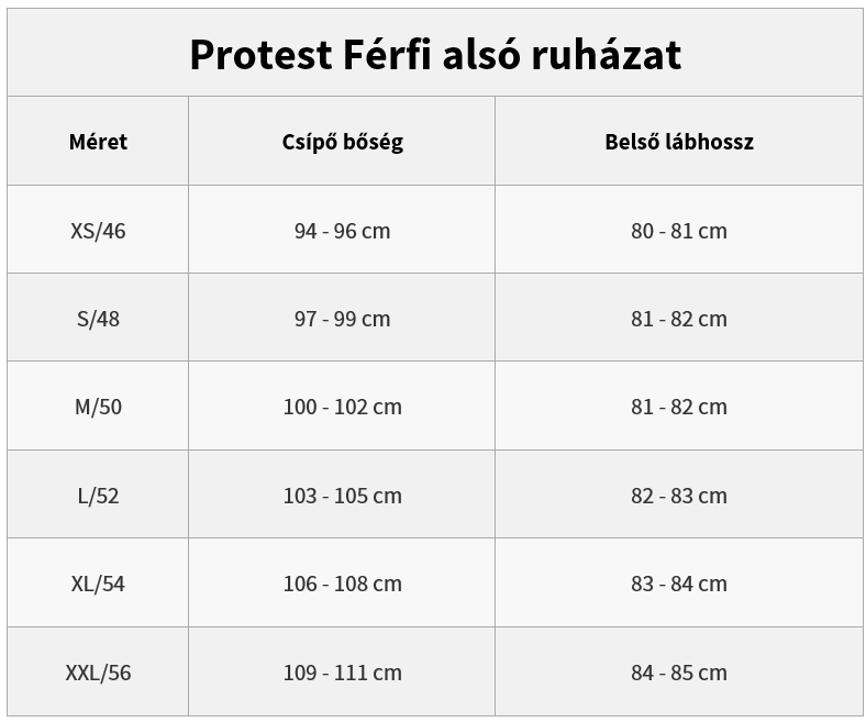 Méretek: XS (46), S (48), M (50), L (52), XL (55), XXL (58)